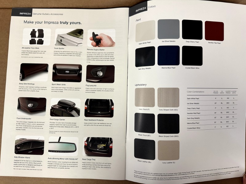 - Covers Subaru Impreza; options, specifications, colors, trims