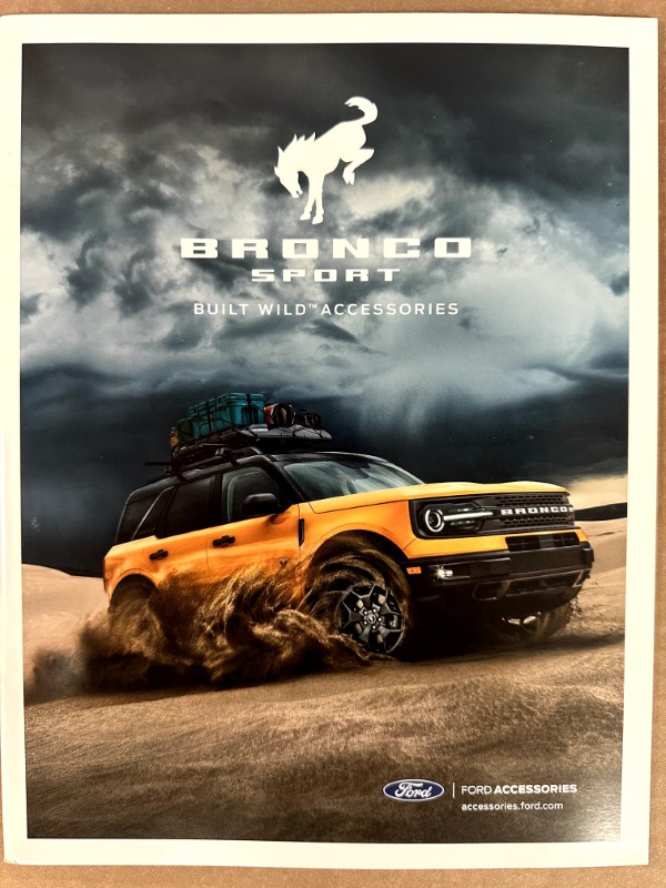 This is an original Ford sales literature piece. It features a promotional highlight for the Ford Bronco Sport with full colored photos.