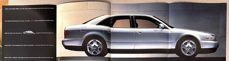 This is an original Audi sales catalog. It features a promotional highlight for the Audi with colored pictures.
