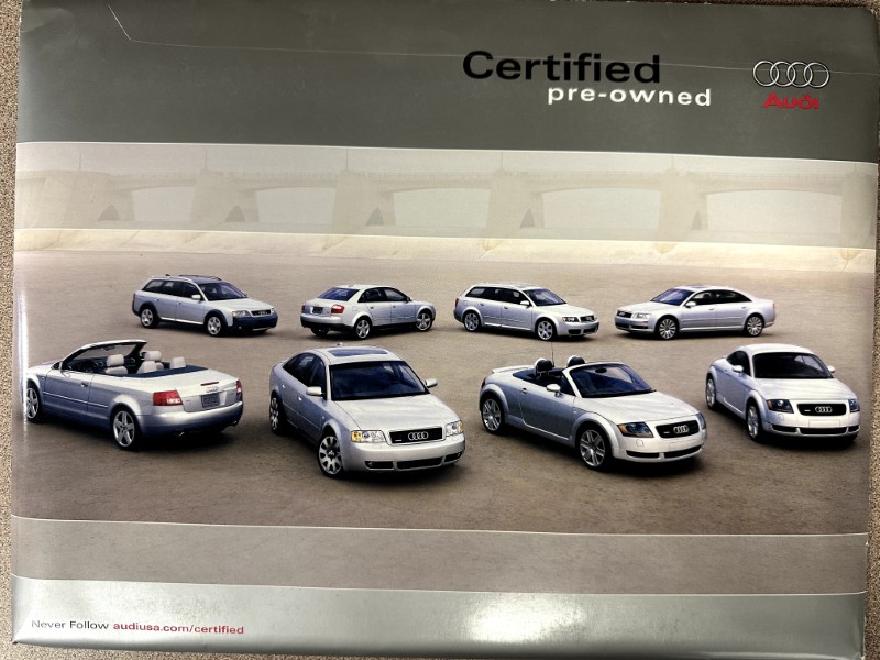 This is an original Audi sales literature piece. It features a highlight on Audi with colored photos.