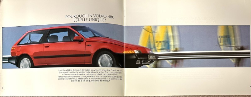 This is an original Volvo sales catalog. It features a promotional highlight for the Volvo 480 with colored pictures.