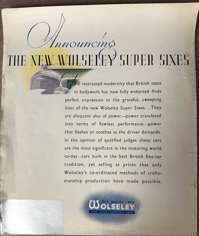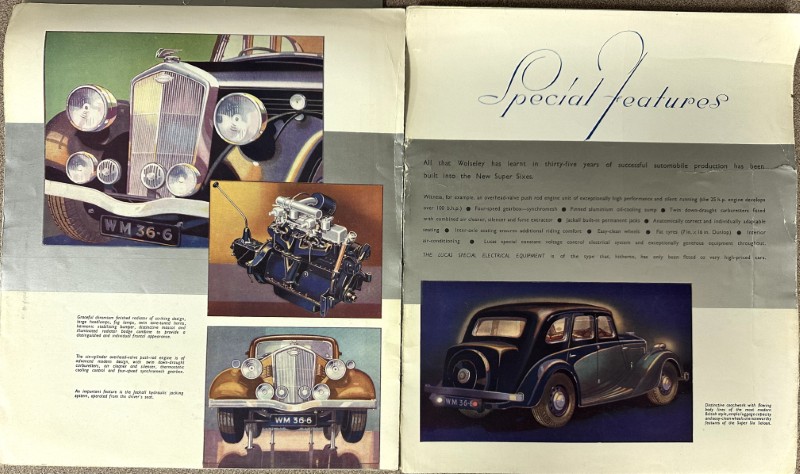 This is an original Wolseley sales literature piece. It features a highlight on Wolseley with colored photos.