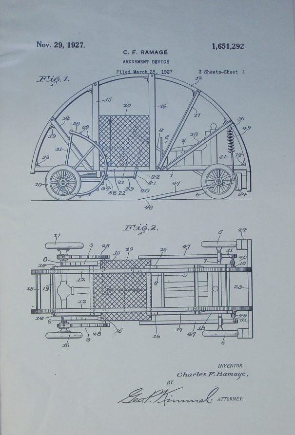 Ramage, C. A. (1927). Somersaulting auto (U.S. Patent No. 1,651,292). Langdon, ND. Merrick Auto Museum, No. 2025.08.054.